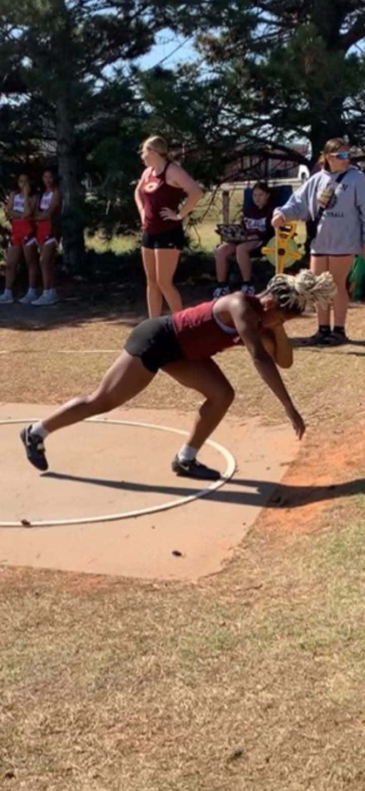 Arlena competes in both shot put and discus, and she takes pride in the art of each throw. “In throws, I watch how other competitors are throwing to adjust my own approach if needed,” she said.